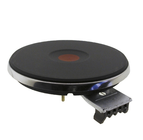 Plaque de cuisson en fonte pour table de cuisson et cuisinière électrique . Diamètre : 220 mm . Puissance : 2600 watts . Epaisseur de la colorette : 8 mm . Multimarques .